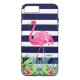 Tropical flowers blue strioes & pink flamingo Case-Mate iPhone case