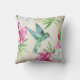 Tropical Flowers Flying Hummingbird Throw Pillow