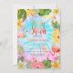 Cute baby shower with tropical flowers, leaves and pink flamingos. These baby shower invitations are easily customized for your event by simply adding your details.