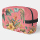 A nature inspired theme adorns your accessory pouch with a tropical hibiscus design, featuring vivid hues of yellow, pink, and cream, personalized with your chosen name or title. This lively pattern is ideal for a practical pouch, complete with a coral pink background that can be customized to any colour you desire.