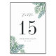 Island chic table number cards feature tropical watercolor palm frond leaves at the corners, framing your table number in elegant off-black. Personalize with your names and wedding date, or name each table for an extra personal touch. Design repeats on reverse side. Coordinates with our Tropical Foliage wedding invitation suite.