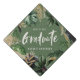 Tropical foliage script graduation cap board. Modern hand painted design.