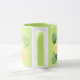 This two toned coffee mug has watercolor illustrations of slices of oranges, lemons and limes against a solid green background. The inside of the mug and the handle are also green.
