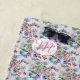 Beach Babe on this beautiful monogrammed towel! .. .. Colourful, Cheerful and Whimsical watercolor paw print paintings. Airy, carefree and customizable. Blue, Pink, Yellow, Purple, Orange,Mauve, Peach, Aqua, Red are just a few colours that are featured! My Dog’s paws dipped in watercolor, then I created flowers, butterflies out of the prints, leaves, green fronds and maybe a surprise within the painting!.. Fabulous gift giving products for many special occasions like weddings, birthdays, anniversaries and more!
