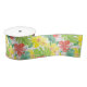 Tropical garden, hibiscus plumeria and palm leaves satin ribbon