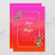 Turn your beautiful dream of a tropical paradise into a reality with our Tropical Garden Sunrise Wedding Invitations. The captivating orange, pink, yellow, and purple background represents the stunning hues of a tropical sunrise and frames your wedding details in a modern, elegant white script. An exquisite gold frame bordered by eucalyptus leaves is the perfect space to personalize your details to create your exclusive wedding invitation. The vibrant nature-inspired design is capped off with gorgeous depictions of birds of paradise, thereby setting the right mood and tone for your unforgettable big day.