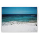Tropical blue sky and ocean upon white sand beach.