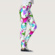 Tropical Gecko Leggings. Brightly coloured tropical island design in hot pink, teal blue, green and purple. Design from an original painting features playful reptiles, hibiscus flowers, and various palm leaves.
