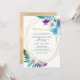 Colourful watercolor tropical leaves wedding 50th wedding anniversary invitation with gold geometric frame and elegant typography.