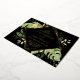 This elegant tropical wedding invitation features green and gold philodendron and fern leaves on a black background. A gold foil geometric frame highlights the foil text. Foil splatters around the outer edges accentuate the exotic botanical design. This sophisticated oasis style invite is perfect for any outdoor, island or destination wedding.