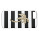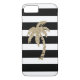 This stylish and girly Barely There phone case features a tropical inspired gold faux glitter palm tree print on a monochrome black & white striped background. Other styles available. An original design by Girl_o_licious.