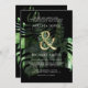 Tropical Gold Monstera Black QR Code Wedding Invitation