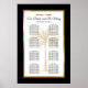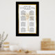 Add your own special touch to this elegant design featuring modern script and black text including an artistic gold palm tree silhouette with a metallic gold frame. This seating chart design features the bride and groom's names along with the words "Eat, Drink, and Be Merry" and "Please Find Your Seat". Templates are provided for up to eight tables with up to 8 or 9 names per table.