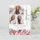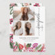 Tropical Graduation Announcement. Celebrate graduation with this beautifully designed announcement, perfect for high school seniors and college graduates. Featuring an elegant grey script on a crisp white background, this sophisticated card showcases three cherished photos on the front, allowing you to share your journey with family and friends. The design is adorned with lush green watercolor palm leaves, monstera leaves, and vivid magenta, pink, and red orchids, ferns, and other tropical florals, creating a vibrant and fresh look that’s perfect for spring and summer graduations. A coordinating pattern on the back completes the design, making this announcement a stunning keepsake that captures the joy and excitement of this milestone moment.