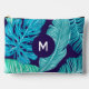Tropical Green Blue Leaves Pattern Monogram Accessory Pouch