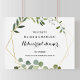 This tropical green leaves rehearsal dinner welcome poster is perfect for a simple rehearsal dinner. The design features hand-painted beautiful green leaves, adorning a gold geometric frame.