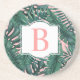 Tropical Green Palm Leaves Coral Monogram Coaster
