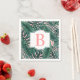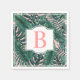 Tropical Green Palm Leaves Coral Monogram Napkin