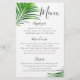 Notre version minimaliste moderne de la tendance verte tropicale sur un menu pour un mariage de plage de destination ou une fête à thème tropical. Feuilles de palmiers dans une couleur verte tropicale luxuriante accentuée de texte gris foncé. ・ ・ ・ Cliquez sur PERSONNALISER pour modifier les polices, arranger le texte et choisir la couleur de l'arrière - plan à coordonner avec votre élégant mariage de plage. ・ ・ ・ Visitez notre atelier de concepteurs pour obtenir des articles plus coordonnés.