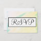 Tropical yellow and green with hint of pastel pink and blue watercolor background. RSVP is written in elegant black script inside white and geometric rectangle. Personalize backside details in black typography against crisp white background. Original Artwork Design by TamiraZDesigns.