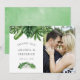 Trendy sage green and white watercolor tropical leaves and white magnolias wedding thank you photo cards.