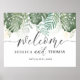 Elegant tropical themed design, featuring monstera and palm leaves in a range of soft greens with the addition of gold line. Customize to make this your unique wedding sign.