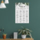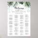 This tropical greenery white alphabetical seating chart is perfect for a rustic wedding. The design features green palm leaves bouquets with lovely white flowers.