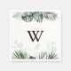 Tropical Greenery White Floral Monogram Wedding Napkin