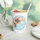 Simple classic beachy looking paper cup with fun colourful retro Illustration image of green palm trees, blue waves, orange sun, and yellow and pink sunrays. Surrounded by words related to summertimes... Waves, Beach Parties, Good Vibes, Cocktails, Summer, Friends, Laughter, Sun and Surf. Really cool paper cups for use during bbq beach of backyard parties and to have in stock at your patio or poolside tiki bar.