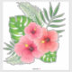 Vinyl sticker with large pink hibiscus flowers with an assortment of tropical foliage