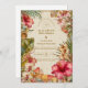 Celebrate your wedding day with timeless tropical elegance. This romantic design features lush hibiscus blooms, soft palm leaves, and painterly botanical details layered over a warm, vintage-inspired background. The refined typography and airy island palette create a sophisticated destination wedding feel that’s perfect for coastal venues, tropical resorts, or summer celebrations.