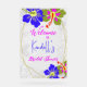 Tropical bridal shower welcome sign in opaque acrylic. Size 12 x 18 inches with a floral border. Illustrated hibiscus flowers decorate the top and bottom corner. Gold coloured lines frame the wording. The floral border will not work on larger signs, but you may go smaller.