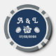Give the guests, bridesmaids, groomsmen, or anyone else attending or helping with your summer-themed wedding or special event a special treat with these customizable poker chips. One side of the poker chip features a white silhouette of a hibiscus flower and monstera leaf on a deep navy blue background. The other side has a sample set of initials and date separated by a matching flower, flanked by tropical leaves. The sample text can be customized with your own details or a special message of your choice to create a unique and personal token to commemorate your big day. This design will match any product from the Tropical Hibiscus in Navy line so that you can make your tropical wedding or special event as coordinated as you like.