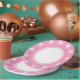 Add a pretty, coordinated touch to your rehearsal dinner, bridal shower, or even a more casual summer or tropical-themed wedding with these paper plates, featuring a petal pink rim decorated with white hibiscus flowers and tropical leaves and a white banded centre section. Be sure to check out the other products in the Tropical Hibiscus in Petal Pink set to create a truly coordinated look for your event.