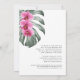Accommodate your family and friends who are unable to attend your wedding in person by live streaming your wedding on Zoom, Skype or other video streaming service. This is a popular choice during the coronavirus pandemic when many are unable to gather in person for large events. This lovely tropical invitation gives them all the info they will need to connect and be a part of your big day. This uniquely beautiful tropical wedding invitation design features a trio of vibrant hot pink - fuchsia orchids and a beautiful Monstera leaf in vibrant watercolors. The design is both simple and elegant with a minimalist look energized by the tropical botanical elements. This invitation is a wonderful choice for coastal weddings, destination weddings or even city weddings that use a magical tropical theme. Personalize the text on both the front and back of this invitation with all your pertinent details. If you need to make additional adjustments, select "click to customize further" at the bottom of the design template. This will open up the design details and allow you to make additional adjustments as needed.