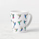Colourful mug for hummingbird lovers featuring several species of hand-painted watercolor tropical hummingbirds, such as a Black-throated Mango Hummingbird, Fiery-throated Hummingbird, Blue-chinned Sapphire, Golden-tailed Sapphire, Coronet and Swallow-tailed Hummingbirds. Images taken from original watercolor paintings by C. Dobbins.