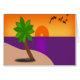 TROPICAL ISLAND WITH PALM TREE, SUNSET AND BIRDS