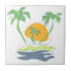 Tropical island beach scenery. Outline palm tree Tile