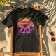 Cool matching family vacation tri-blend t-shirts for an island cruise. Features beautiful palm trees in front of a pretty pink beach sunset. Perfect custom black tees for your summer trip to the sea.