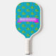 Remembering days of Gidget, surfing on the beach. Hit the courts this summer with this sun filled Caribbean blue palm tree pickleball paddle. A place on one side for personalization with your own name or message, or eliminate the banner and text.
