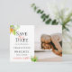 Tropical island watercolor flowers and foliage, Photo Wedding Save the Date Card. Customize text font style, colour and size.
