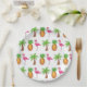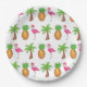 Tropical Island Palm Tree Pineapple Pink Flamingo Paper Plate