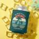 Tropical Island Palm Tree Sunset Beach Party Teal Can Cooler