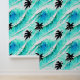 Ideal for any beachy establishment; coastal restaurant; coastline hotels; lodges; resorts and chalets, this blue, black and white white aerial view of black palm leaves scattered across white and turquoise blue wavy ocean water will transform any room. Bring the beach indoors, with this fun and elegant seamless pattern that is easy to peel and stick to both smooth and textured walls.
