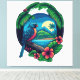 The design is a retro-style postcard featuring a tropical island scene. This design captures the essence of a tropical island vacation, with its palm trees, serene sea, and beach-themed logo. The retro style of the postcard gives it a nostalgic feel, inviting the viewer to imagine themselves lounging on a sandy beach, soaking up the sun and enjoying the beauty of nature.