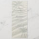 The thirst-quenching colours of teal, butter yellow and sea green give the pieces in this mix n' match design set some of it's irresistible appeal... the beautiful island palm trees, palm fronds, delicate birds in the sky and giant sunrise over sparkling water easily provide the rest. The matching wedding menus shown here feature all of the above as well as a palm tree shadow on sand for a striking flip side and a template to easily add your menu and the bride and groom's initials and wedding date. Search ID581 to see the matching products and other colour options for this design.