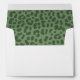 Envelope personalized with return address and tropical leaves revealing a leopard. Green leopard print liner.