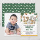 Safari themed birthday invitation featuring tropical green and gold watercolor greenery and a group of cute jungle animals