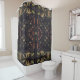 Exotic and dark, with natural colours and a slight flavour of the Orient, the beautiful pattern by ZoeSPEAK on this Shower Curtain was made from Zoe’s original photograph of wrought iron latticework and tropical print fabric. Palm fronds and other tropical leaves, in shades of pale greens, terracotta and beige, rest gracefully on a black background behind the latticework.