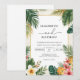 Lush emerald and verdant foliage frames this tropical design. Hints of vibrant blossoms add a cheerful touch, creating a vibrant and exotic atmosphere for your special event.